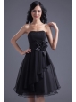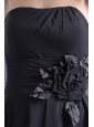 A-line Black Strapless Knee-length Hand Made Flowers Prom Dress