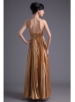 A-line Brown Floor-length Pleats Chiffon Prom Beading Dress