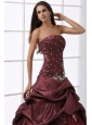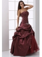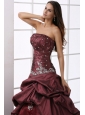 A-line Burgundy Strapless Beading and Appliques Quinceanera Dress