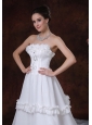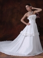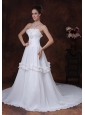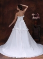 A-Line Chiffon Strapless Chapel Train Romantic Low Cost Wedding Dress Ruffles