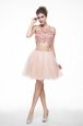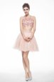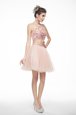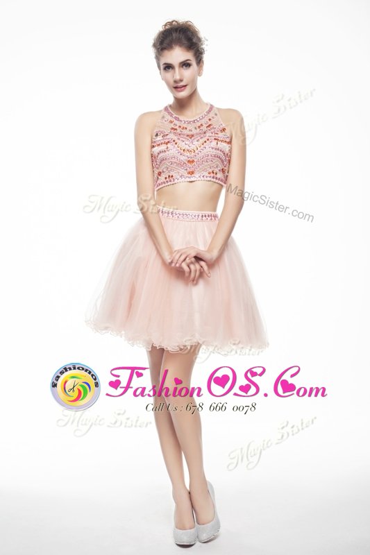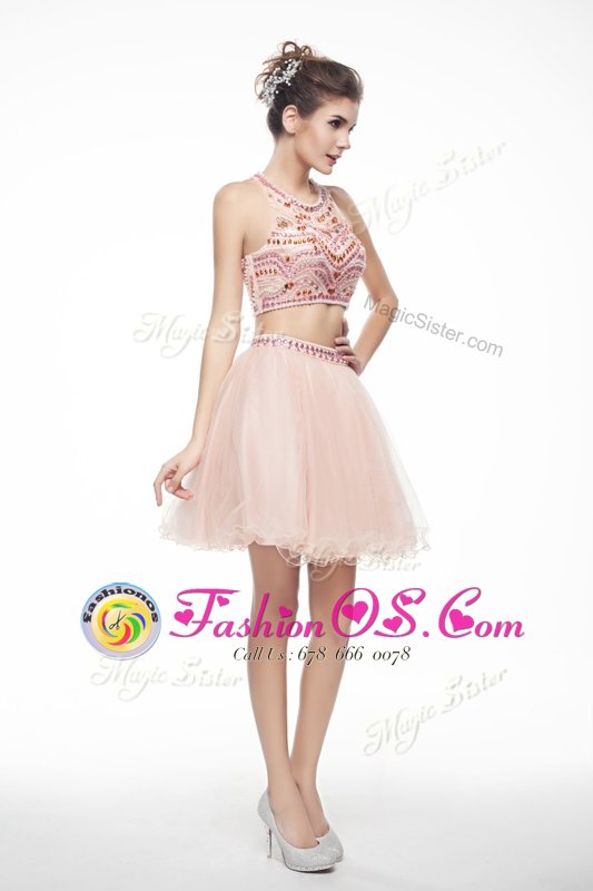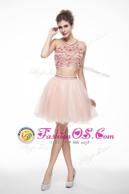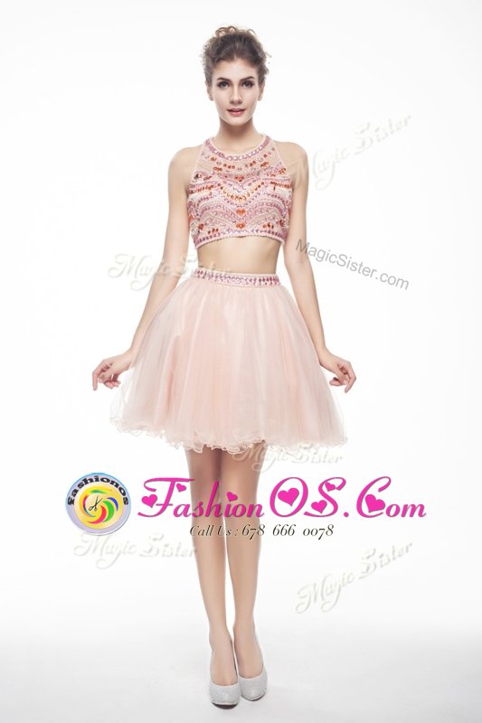 A-line Cocktail Dresses Peach Scoop Chiffon Sleeveless Knee Length Backless