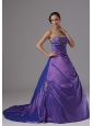 Strapless dresses are one of the sexier styles on the market today. They show just enough skin to be classy without being too revealing. This purple strapless dress features a sweetheart neckline accented with fashionable and sparkling beadings. The lovely gathered pattern on one side of the skir adds lots of textured detail. A lace up corset style closure in the back secures the dress in place.