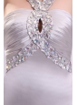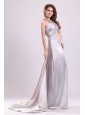 Home >  Prom Dresses >  Sexy Prom Dresses > A-line Gray Straps Beading and Ruching Brush Train Prom Dress