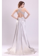 A-line Gray Straps Beading and Ruching Brush Train Prom Dress