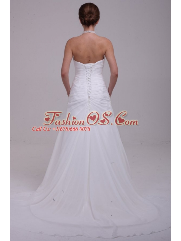 A-Line Halter Ruching and Appliques Chiffon Wedding Dress
