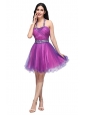 Home >  Prom Dresses >  Junior Prom Dresses > A-line Halter Top Beading and Ruching Knee-length Purple Prom Dress