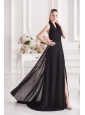 Home >  Prom Dresses >  Beautiful Prom Dresses > A-line Halter Top Floor-length Chiffon Black High Slit Prom Dress