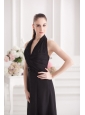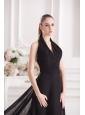 A-line Halter Top Floor-length Chiffon Black High Slit Prom Dress