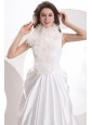 A-line High Neck Feather Court Train Taffeta Wedding Dress