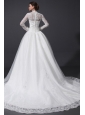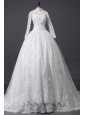 A-Line High Neck Organza Wedding Dress with Chapel Train with Appliques