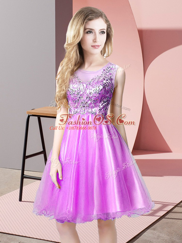 A-line Homecoming Dress Lilac Scoop Tulle Sleeveless Knee Length Zipper
