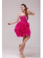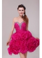 A-line Hot Pink Sweetheart Knee-length Hand Made Flowers Prom Dress