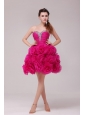 Home >  Prom Dresses >  Fashionable Prom Dresses > A-line Hot Pink Sweetheart Knee-length Hand Made Flowers Prom Dress