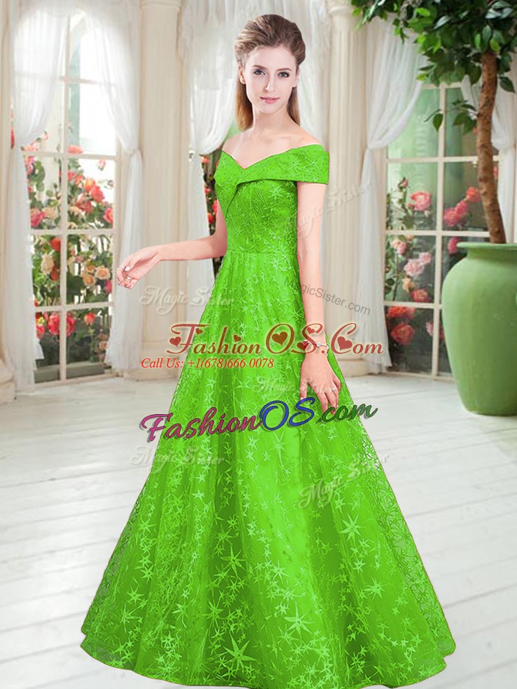 Home >  Prom Dresses >  Affordable Prom Dresses > A-line Lace Off The Shoulder Sleeveless Beading Floor Length Lace Up Prom Evening Gown