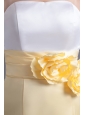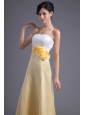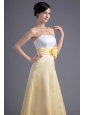 A-line Light Yellow Strapless Hand Made Flowers Ankle-length Prom Dress