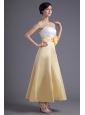 Home >  Prom Dresses >  Elegant Prom Dresses > A-line Light Yellow Strapless Hand Made Flowers Ankle-length Prom Dress