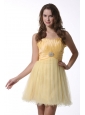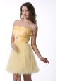 A-line Light Yellow Strapless Prom Dress with Ruching Mini-length