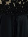 A-line Military Ball Dresses For Women Black Scoop Taffeta Sleeveless Floor Length Backless