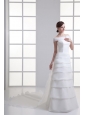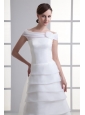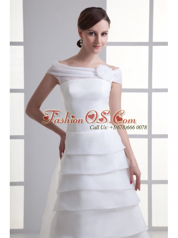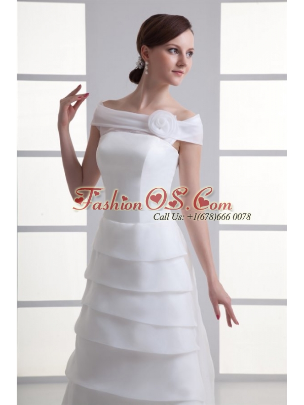 Home >  Wedding Dresses >  Perfect Wedding Dresses > A-Line Off The Shoulder Organza Wedding Dress with Watteau Train