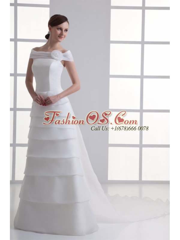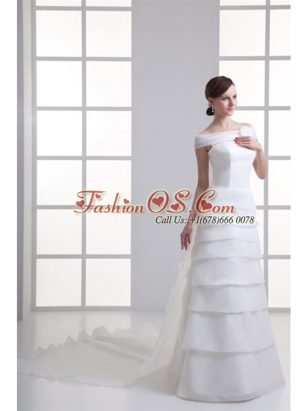 A-Line Off The Shoulder Organza Wedding Dress with Watteau Train