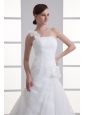 Home >  Wedding Dresses >  Perfect Wedding Dresses > A-line One Shoulder Appliques Ruching Court Train Wedding Dress