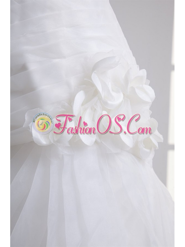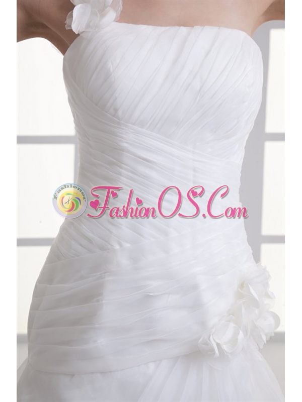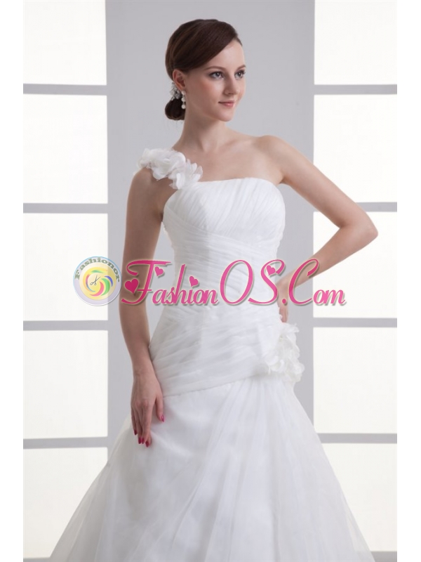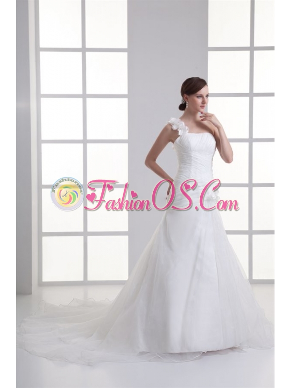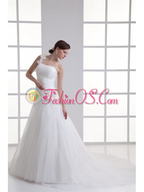 A-line One Shoulder Appliques Ruching Court Train Wedding Dress