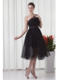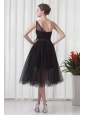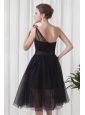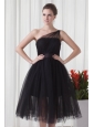 A-line One Shoulder Black Tulle Tea-length 2014 Prom Dress