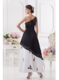 A-line One Shoulder Embroidery Black and White Ankle-length Prom Dress