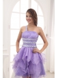 A-line One Shoulder Lavender Beading and Ruching Short Prom Dress