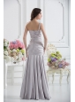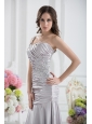 A-line One Shoulder Satin Beading and Ruching Prom Dress in Sliver