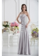 Home >  Prom Dresses >  Modest Prom Dresses > A-line One Shoulder Satin Beading and Ruching Prom Dress in Sliver