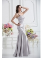 Home >  Prom Dresses >  Best Prom Dresses > A-line One Shoulder Satin Beading and Ruching Prom Dress in Sliver