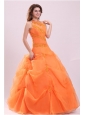 Home >  Quinceanera Dresses >  Luxurious Quinceanera Dresses > A-line Orange Halter Top Neck Appliques with Beading Quinceanera Dress