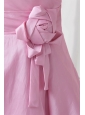A-line Pink One Shoulder Knee-length Hand Made Flowers Prom Dress