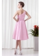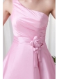 Home >  Prom Dresses >  Junior Prom Dresses > A-line Pink One Shoulder Knee-length Hand Made Flowers Prom Dress