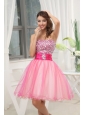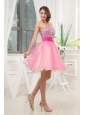 Home >  Prom Dresses >  Discount Prom Dresses > A-line Pink Strapless Beading Tulle Knee-length Prom Dress