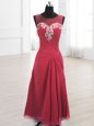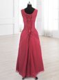 A-line Prom Dresses Wine Red Scoop Chiffon Sleeveless Floor Length Lace Up