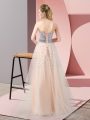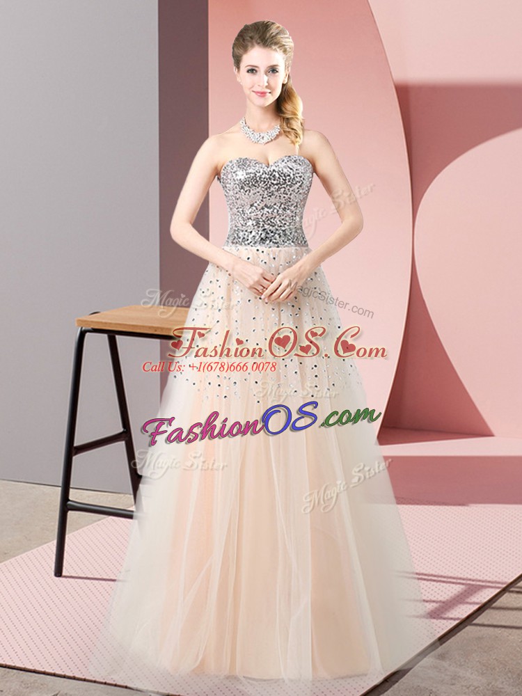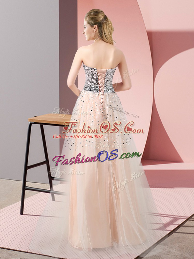 A-line Prom Evening Gown Peach Sweetheart Tulle Sleeveless Floor Length Lace Up