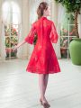A-line Prom Evening Gown Red High-neck 3 4 Length Sleeve Knee Length Zipper