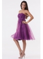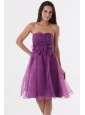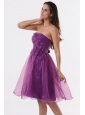 A-line Purple Strapless Appliques Organza Knee-length Prom Dress