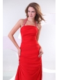 A-line Red Halter Top Neck Beaded Decorate Prom Dress with Side Zipper