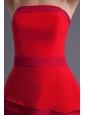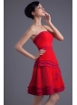 A-line Red Strapless Mini-length Chiffon Ruching Prom Dress