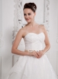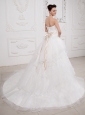 Home >  Wedding Dresses >  Beautiful Wedding Dresses > A-line Ruffled Layeres Ruched Bodice Wedding Dress With Beading Sash
