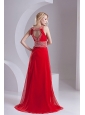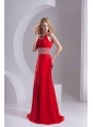 Home >  Prom Dresses >  Popular Prom Dresses > A-line Scoop Chiffon Beading and Ruching Sweep Train Prom Dress