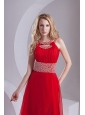 A-line Scoop Chiffon Beading and Ruching Sweep Train Prom Dress