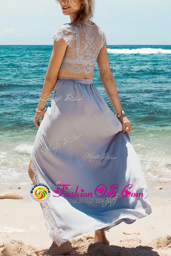 Home >  Prom Dresses >  Fashionable Prom Dresses > A-line Silver Scoop Taffeta Cap Sleeves Tea Length Zipper