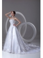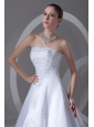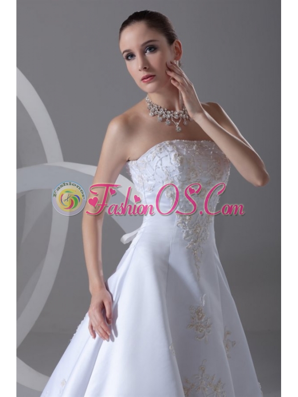 A-line Strapless Appliques Cathedral Train Satin Wedding Dress