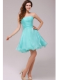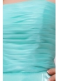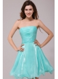 A-line Strapless Aqua Blue Organza Ruching Prom Dress