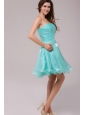 Home >  Prom Dresses >  Fashionable Prom Dresses > A-line Strapless Aqua Blue Organza Ruching Prom Dress