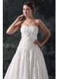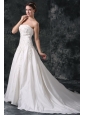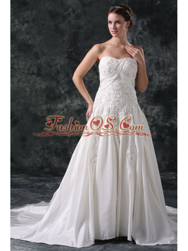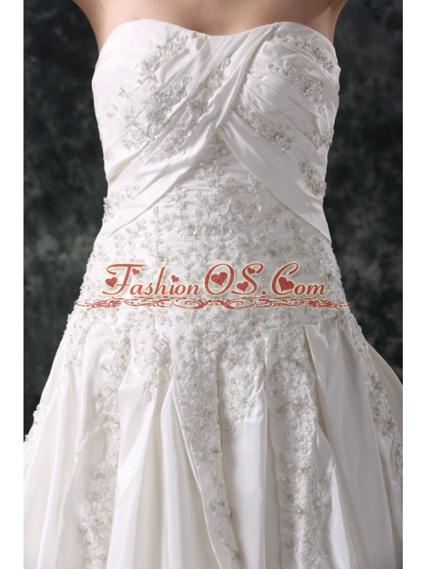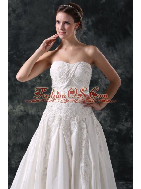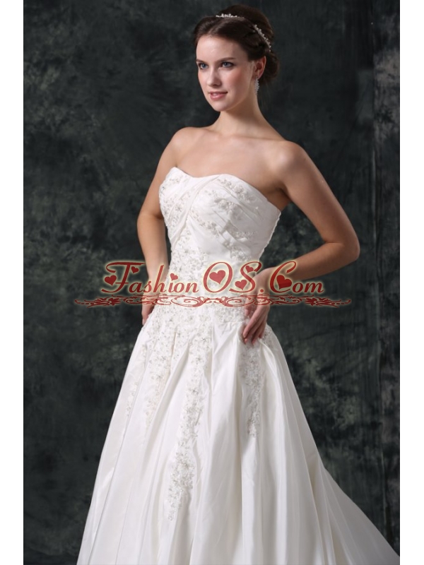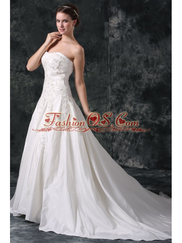 A-Line Strapless Beading Lace Up Taffeta Wedding Dress
